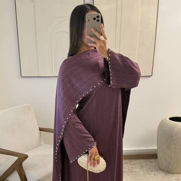Abaya Dubai Kimono Lamia Vi erbjuder La Abaya Dubai Kimono Lamia. Om du, liksom vi, strävar efter en distingerad look kommer du att älska denna magnifika skapelse. Broderad abaya kimono Kan bäras öppen eller stängd med medföljande skärp Tyg av högsta kvalitet för ett flödande och elegant fall Så här bär du en abaya kimono: Abayan kan bäras öppen eller stängd tack vare ett skärp. För en emiratisk stil kan du bära en stängd abaya tillsammans med en Sultana.R sjal i samma kvalitet och matchande skärp. För en modern look skapa din egen outfit genom att bära en öppen abaya med ett palats och ett par pumps. Emiratiska storleksanvisningar i längd: En storlek som passar kvinnor mellan 36 och 48 i klädstorlek. Emiratisk storlek 56: Du mäter mellan 1,57 och 1,67 m. Emiratisk storlek 58: Du mäter mellan 1,68 och 1,77 m. Anvisningar för användning av din emiratisk abaya: Maskintvätt kallt eller 30 °C Tvätta endast med liknande färger.
