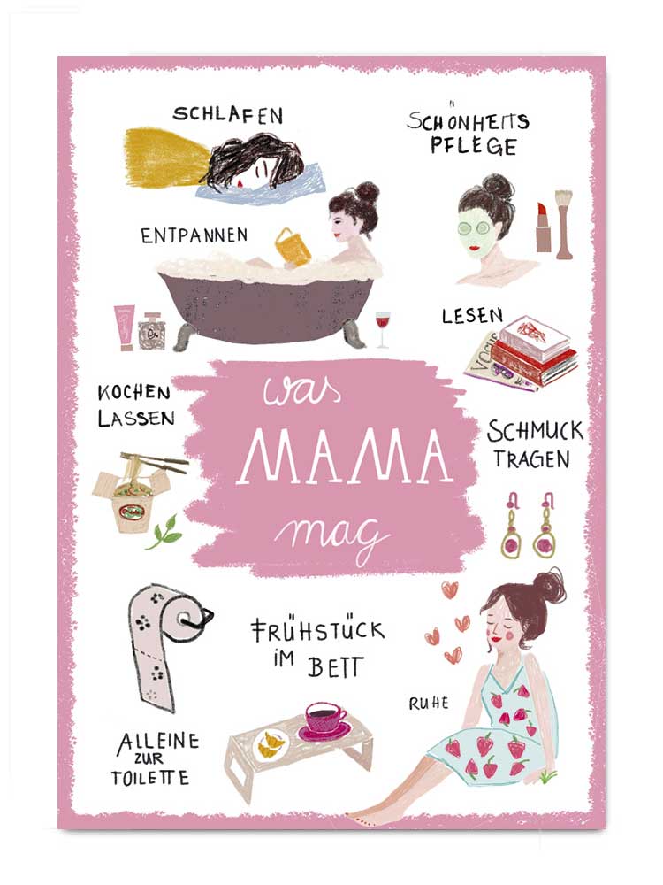 Vykort med illustration av yogapositioner, format A6, 580 g träpulperat papper. Från serien Make Your Day.