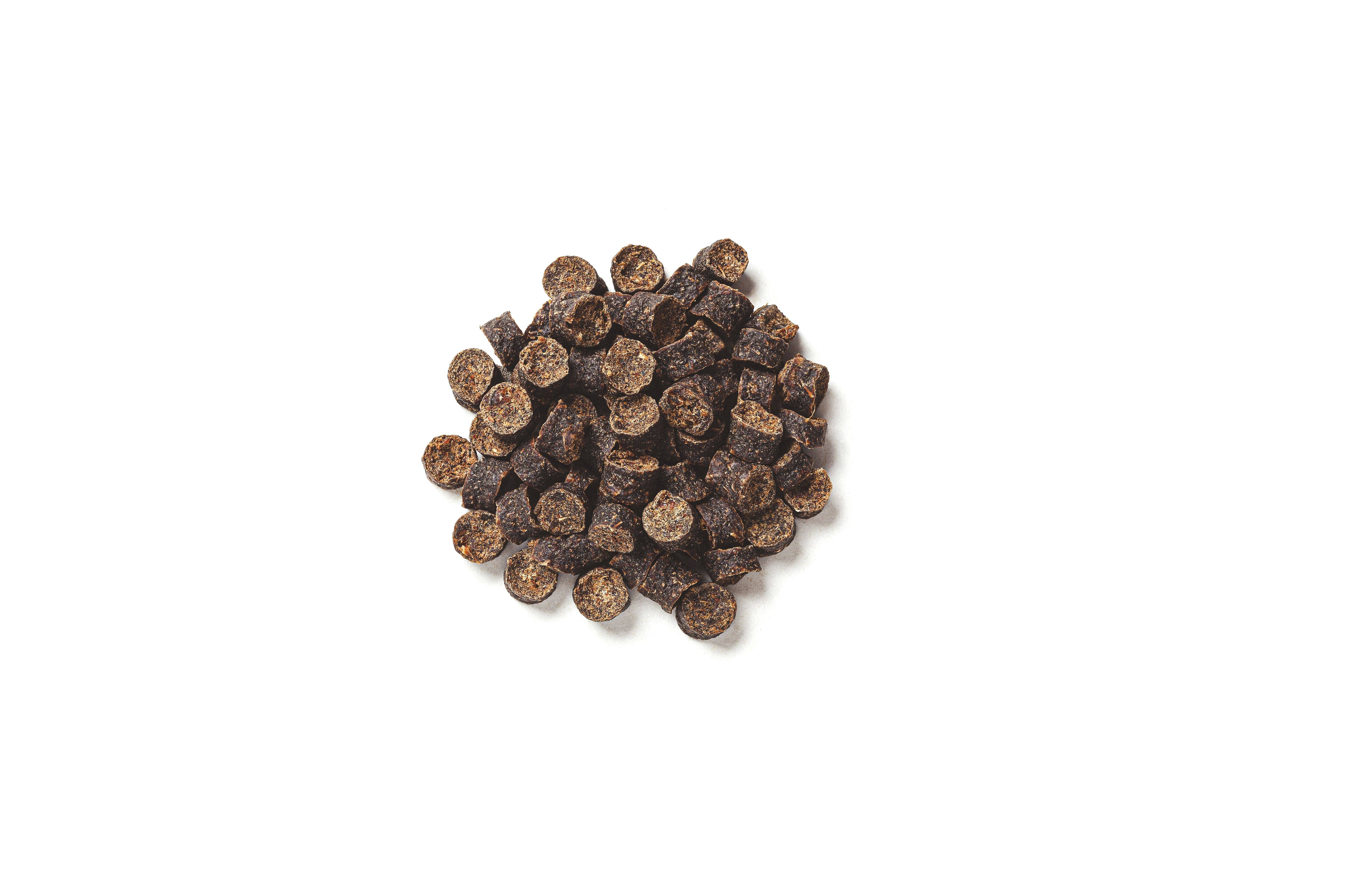 Lättsmält mellanmål med hög andel strutskött. Innehåller naturlig antioxidant betanin, bidrar till vitaminförsörjning (B-gruppen, folsyra) samt stöd för kalium- och järnförsörjning. Utfodringsanvisning: Endast under uppsikt. Se till att tillhandahålla tillräckligt med färskt dricksvatten. Den faktiska dagliga utfodringsmängden kan variera individuellt, beroende på bland annat ålder, aktivitetsnivå, ras, boende och många andra livsomständigheter eller egenskaper hos djuret. Råprotein i % 32,70% Fetthalt: 3,70% Råaska: 4,40% Råfiber: 0,10% Fuktighet: 21,80% Påsstorlek i mm: 140x80x210 Påsmaterial: Full-PE (PE-LD och MDO-PE) hög- och lågsigillblandning Påstyp: Doypack + Zipper + Eurohål Mått display / ytterpåse: Displaystorlek M 225x135x120 Fodertyp: Kompletteringsfoder för hundar.