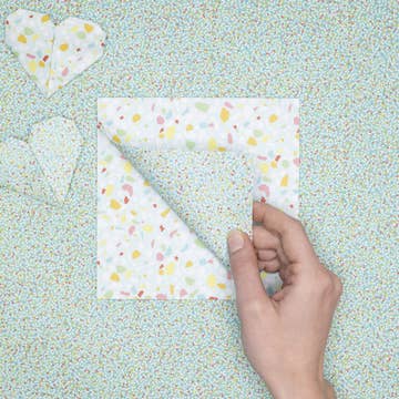 Origami är konsten att vika papper, en fin och gammal konstform uppskattad av både barn och vuxna. Skapa båtar, blommor, tranor, men också presentaskar eller till och med origamismycken. Setet innehåller 40 ark origamipapper med tryck, vikt 80 g, med fyra blommönster på framsidan och enfärgade baksidor. Varje mönster finns på 10 ark. Innehåll: 40 ark i storlek 20,3 x 20,3 cm.