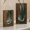 - Intrikat skulptering: Handgjord med noggrann uppmärksamhet på detaljer. Varje vas har intrikata skulpturer och texturer som för tankarna till Saharaökens naturliga skönhet och råa ytor. - Material: Vasen är tillverkad av högkvalitativt imiterat trä. - Mått: Vasen finns i två storlekar: - Medium (M): 21 cm hög och 36 cm lång - Stor (L): 17 cm hög och 51 cm lång