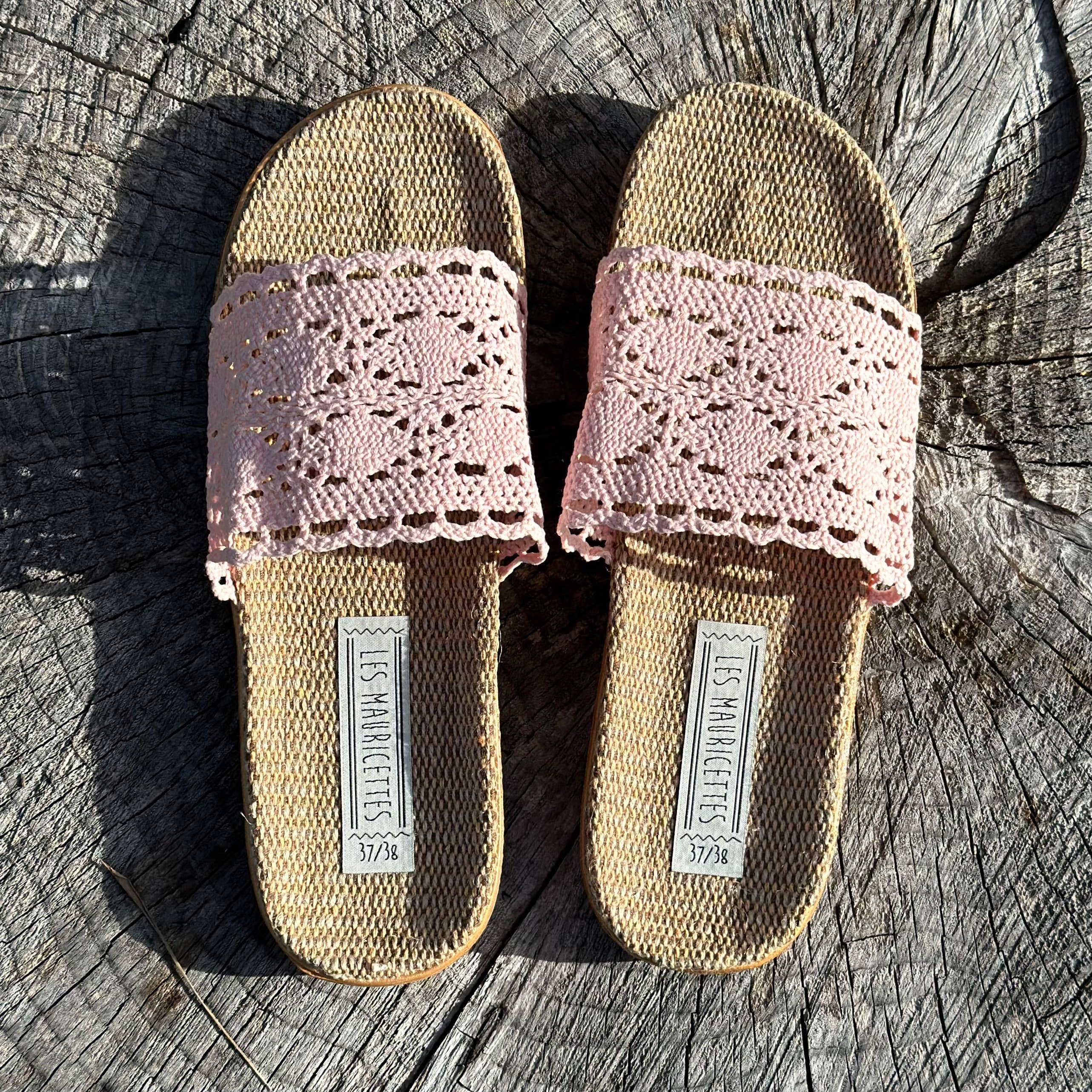 Ah, Hermeline och hennes Mauricettes är verkligen en kärlekshistoria. Hon sätter på sig dem direkt på morgonen och bär dem hela dagen. Hon älskar hur lätta sandalerna känns, nästan som att gå barfota! Egenskaper: - Mjuk innersula i vävt linne - Ovandel i polyester och bomull - Ultra flexibel sula med halkskydd - Komfort: lika lätta som fjädrar på fötterna - Levereras i en fin jutesäck - Material i undersulan: EVA (etylenvinylacetat) - Vikt för ett par Mauricettes: 240 gram Mauricettes tillverkas i Kina och formges i Frankrike.