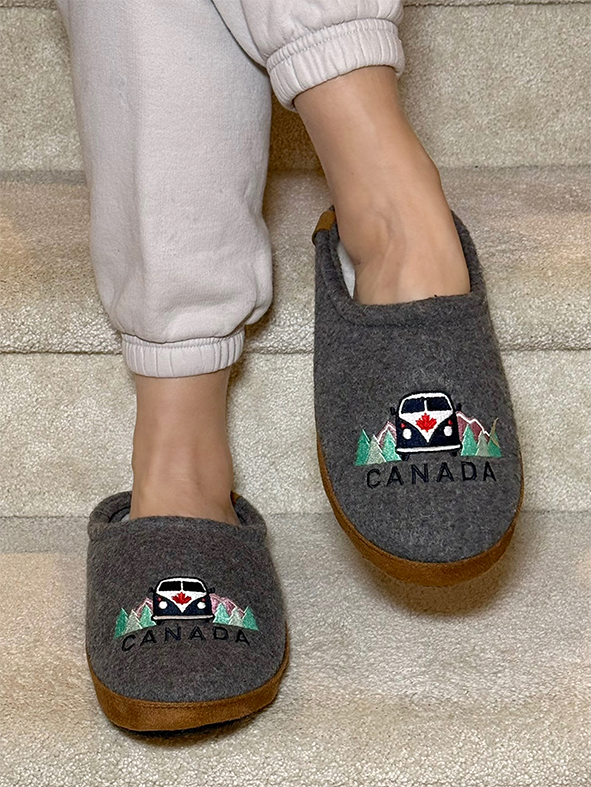 Inspirerad av mystiken och underverken i den kanadensiska vildmarken, har Sasquatch Sunset Canada-tofflorna en slående broderad silhuett av den legendariska Sasquatch mot en djärv solnedgångsgradient. De varma nyanserna och den dynamiska designen väcker en känsla av äventyr, vilket gör dessa tofflor till en unik hyllning till Kanadas vidsträckta landskap och folklore. Tillverkade för överlägsen komfort, är dessa tofflor fodrade med ultramjuk sherpa-fleece, vilket ger exceptionell värme och mysighet. Den skumvadderade innersulan säkerställer stöd hela dagen, medan den hållbara halkfria sulan erbjuder stabilitet på inomhusytor. Lätta men ändå isolerande, de är designade för komfort och avkoppling året runt. * Mikrofiberfleece för optimal komfort * Sherpa-fleece foder * Räfflad sula för bättre grepp * Bekvämt skumstöd * Lämpliga för både inomhus- och utomhusbruk * Storleksguide: * M (25 cm) * L (26 cm) * XL (27 cm) Perfekta för presentbutiker, boutiquer och souvenirhandlare, dessa tofflor är ett distinkt minne för resenärer, friluftsentusiaster och de som uppskattar Kanadas rika arv. Genom att kombinera hantverk med komfort är de den perfekta blandningen av stil och funktionalitet.