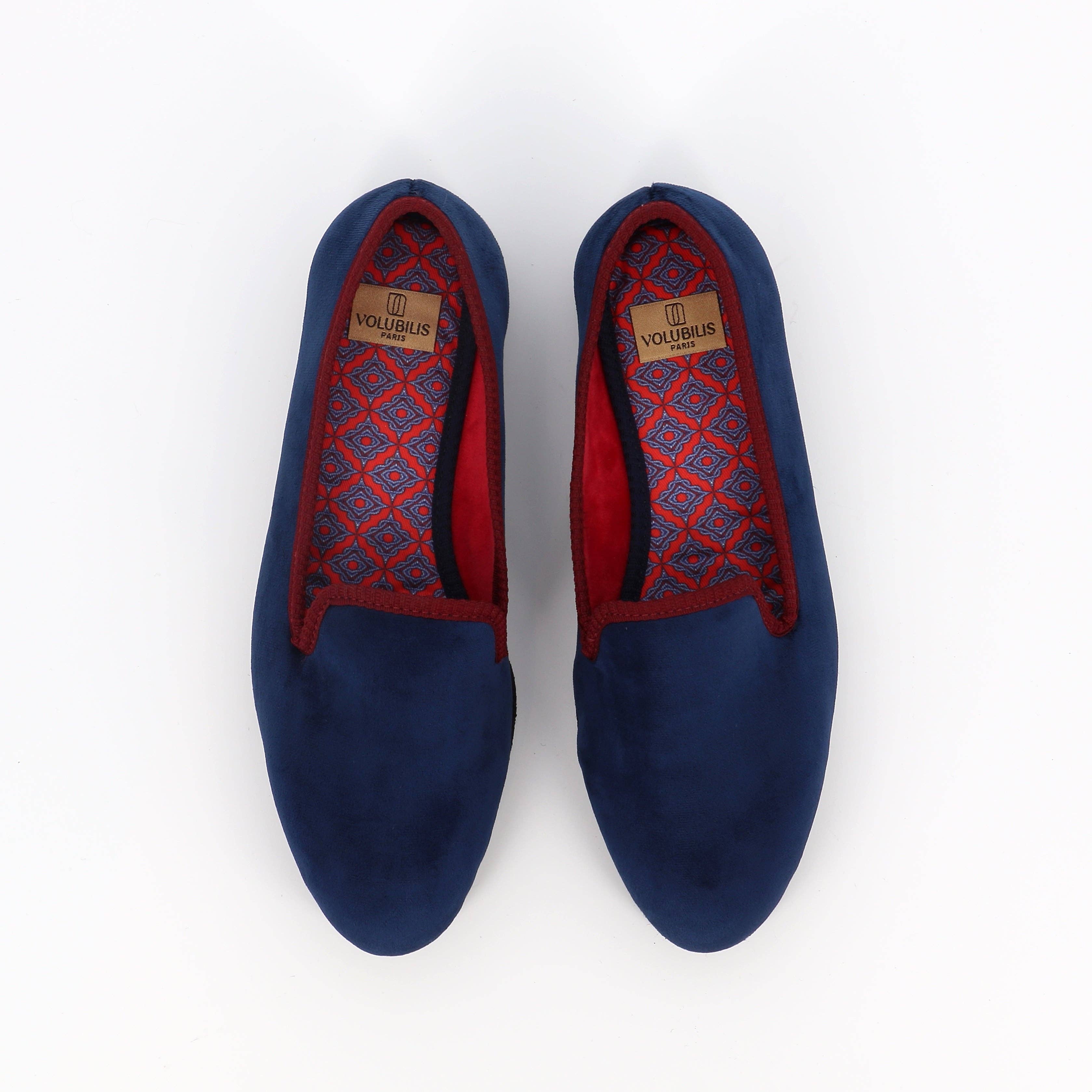 • Yttersula av ullfilt, vävd i varp och väft samt massfärgad • Sula täckt med en genomskinlig halkskyddsfilm • Ovanstycke i svart sammet dekorerat med Brandenburg-broderi • Förstärkt med tryckt bomullstwill, fodrad med sammet