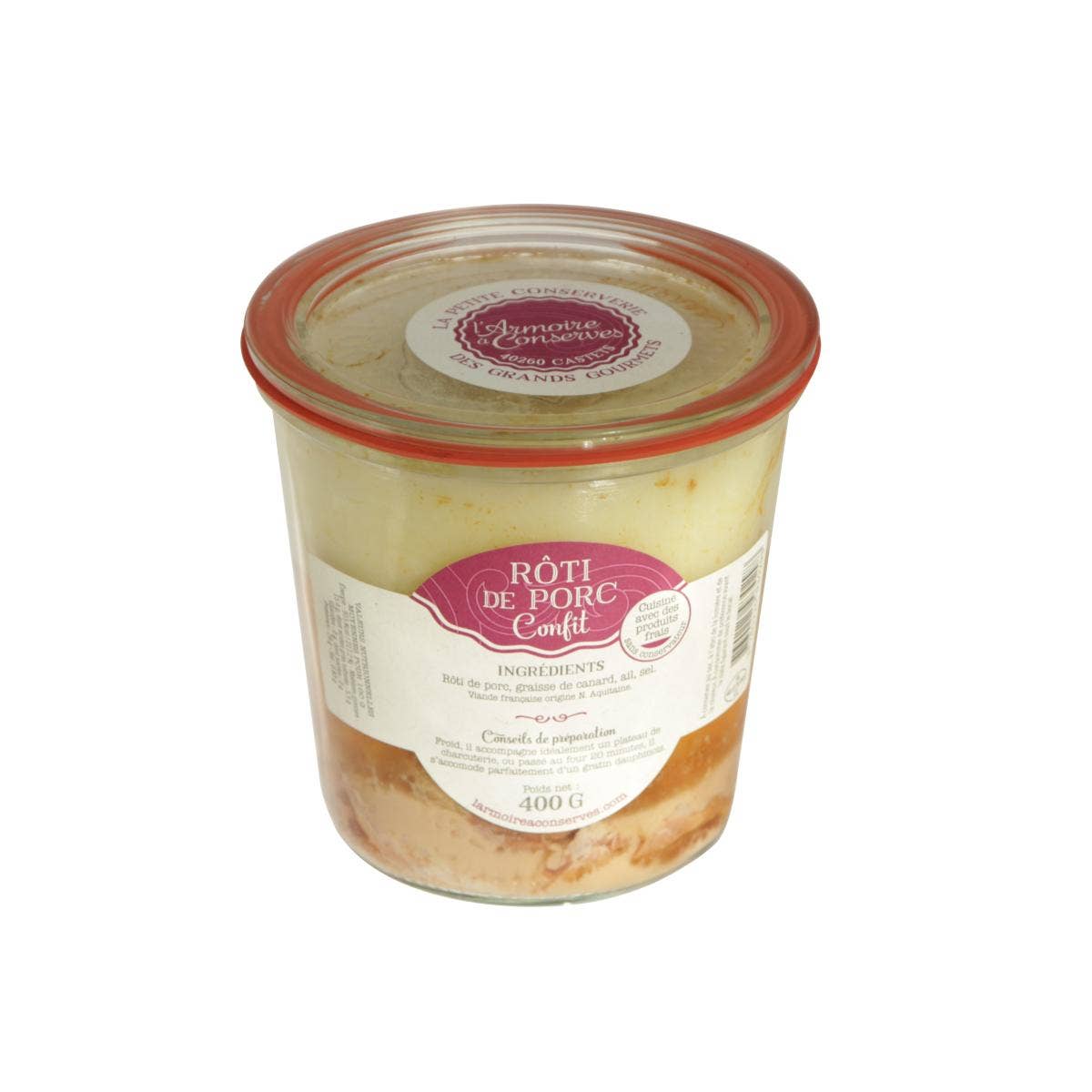 SKU: 3760225931028 Tillverkad i Frankrike Förvaring: Hyllstabil Hållbarhet: 24–36 månader Ingredienser: Fett och mager anka (nytt Aquitaine-ursprung), Espelettpeppar, salt, peppar. Produktion: Frigående, Inga konserveringsmedel, Inga konstgjorda sötningsmedel, och Lokalt framställd Vikt: 150 g (5,29 oz)