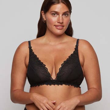 Bandeau-urringning med korsande band på ena sidan och fin spets med växtmönster på den andra: här är Liao, vår nya bh som är både bekväm och sexig. - Korsande och justerbara band - Justerbar 4-vägsknäppning