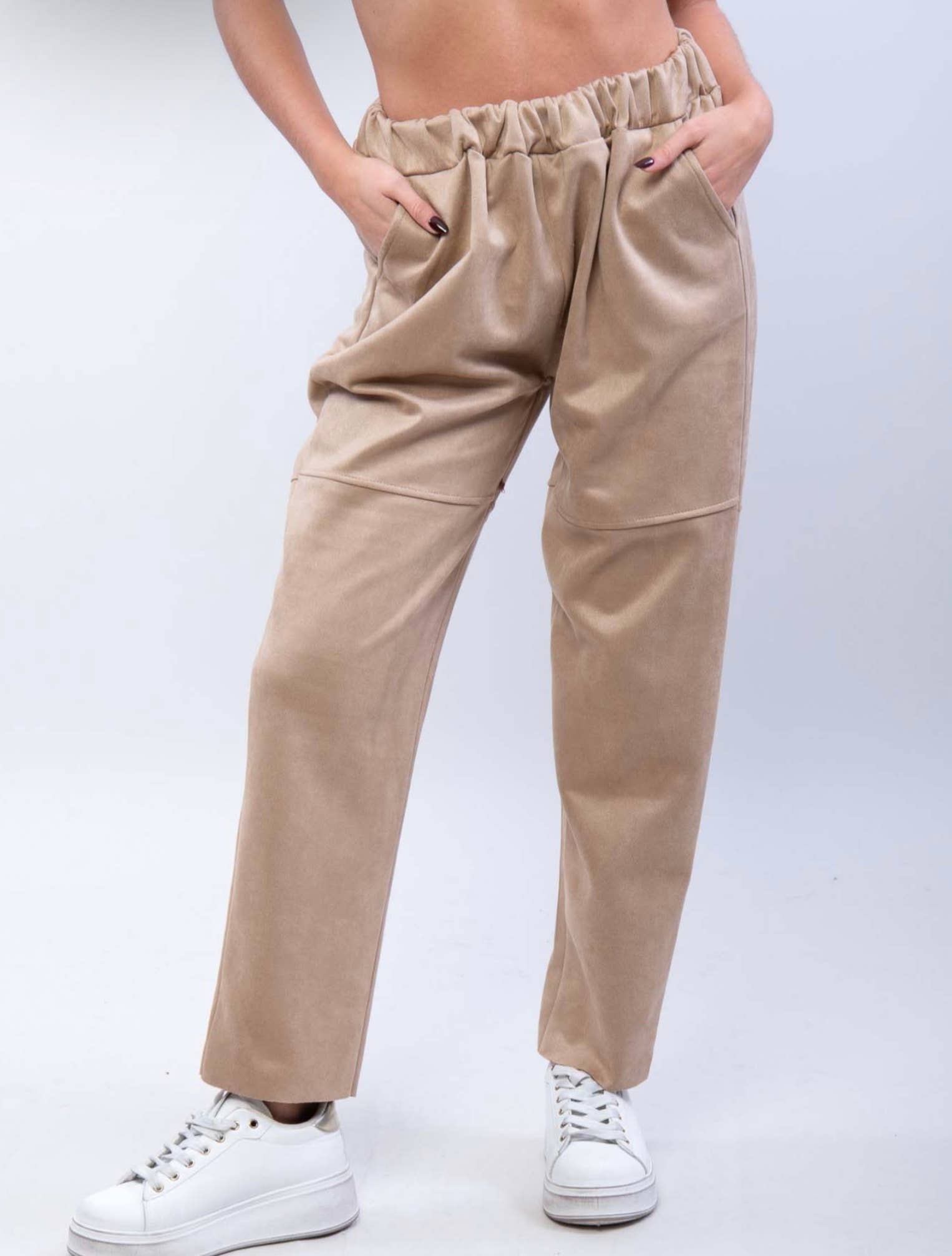 Dambyxor i chino med elastisk midja och vida raka ben