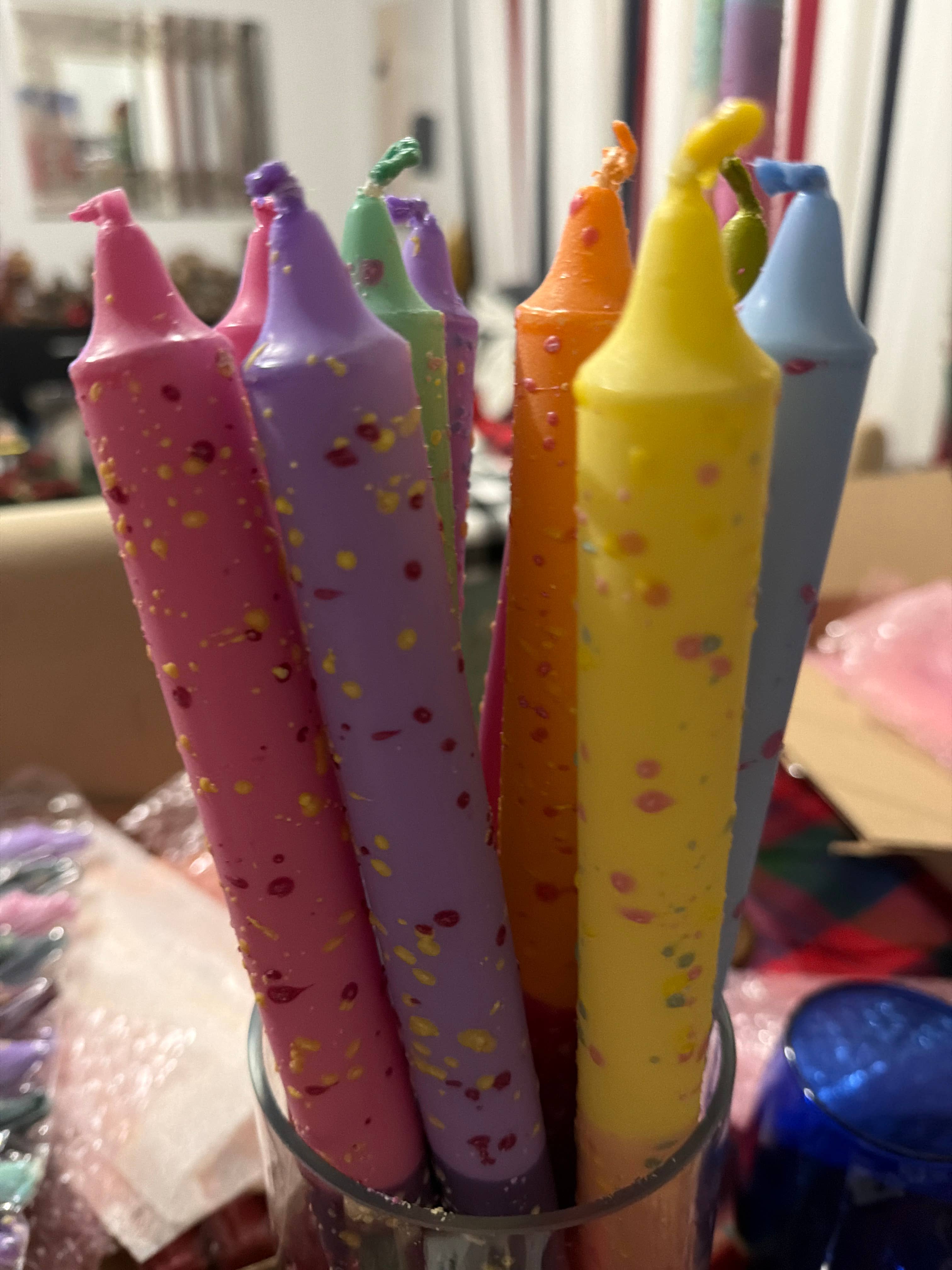 Tillverkad i Danmark Brinntid: 10–11 timmar Doft: Oparfymerad Färg: Flerfärgad och Rosa Förmån: Avkopplande Handgjort: Ja Ingredienser: Stearinvax Stil: Traditionell Säsong: Sommar och Vår Tema: Familj och vänskap Tillfälle: Bröllop och förlovning och Födelsedag Typ av vax: Stearin Produktspråk: Engelska Vikt: 100,02 g (3,53 oz) Mått: 35 x 2,2 x 35 cm (13,8 x 0,9 x 13,8 in) Produktmaterial: Vegansk Förpackning: Återvinningsbar Produktion: Etiskt framställd och Fair Trade