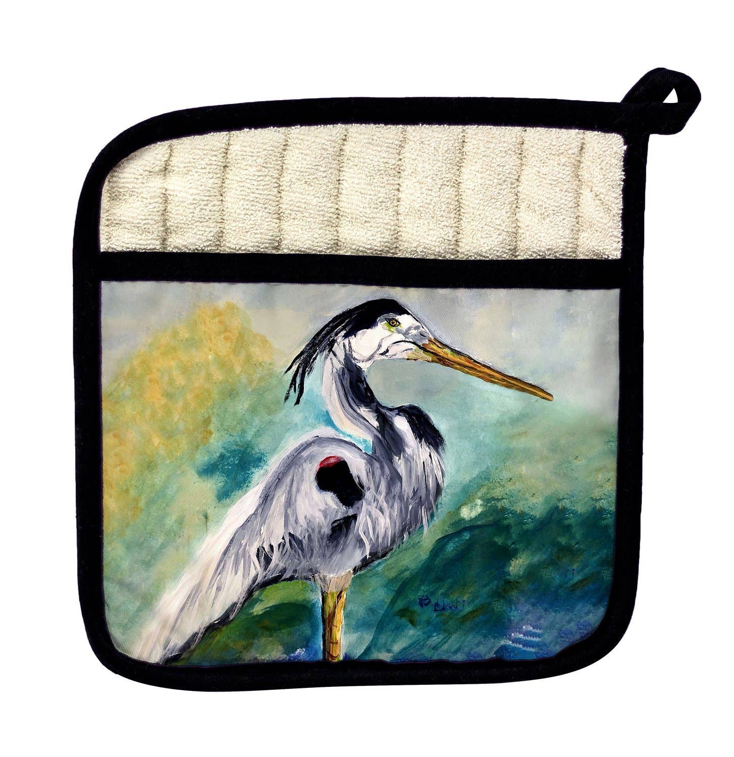 Snygg grythållare/ugnshandske med dubbla användningsområden med levande tryckt frontpanel. Den mjuka innerfickan i frotté gör det möjligt att använda som en ugnshandske. Värmebeständig upp till 400 grader. Alla våra produkter är baserade på mönster av konstnärerna R.B. Hamilton och Betsy Drake och är tryckta i USA från importerade material.