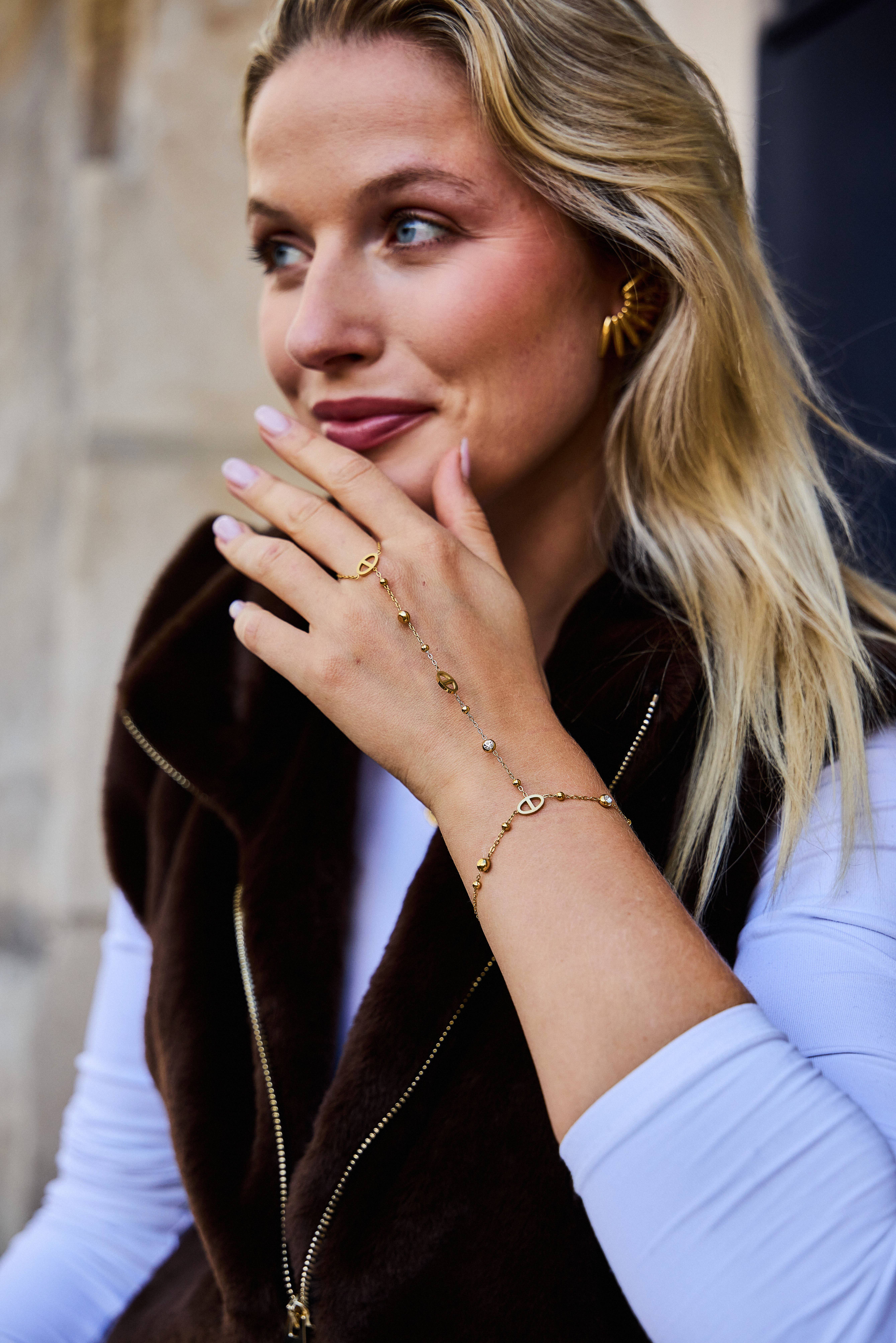 Fint armband i rostfritt stål med marinkedjor och strass