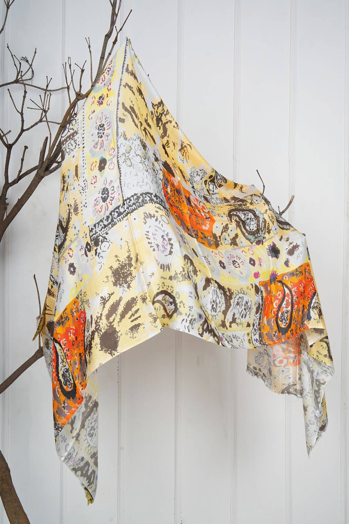 Denna silkesmodala halsduk kommer att lägga till den känslan av lyx till din garderob. Tyg - 90% Modal, 10% Silke. Denna halsduk är en lyxig blandning av naturliga tyger av siden och modal och lätt nog att bära som huvudlindning på sommaren eller som halsduk på vintern. Mycket mjuk att beröra och mycket hållbar. Vänligen hitta mer information nedan om modaltyget. Modal tyg är ett biobaserat tyg som är tillverkat av spinnande bokträdscellulosa. Modal anses generellt vara ett mer miljövänligt alternativ till bomull eftersom bokträd inte kräver mycket vatten för att växa och därför använder produktionsprocessen cirka 10-20 gånger mindre vatten. Storlek - Ca 70cm* 180cm. Storleken kan variera något eftersom varje halsduk är handgjord. TVÄTT INSTRUKTIONER handtvätt i ljummet vatten mild tvål hänga för att torka järn på låg till medelvärme ett hängkort med tvättinstruktioner ingår i halsduken.