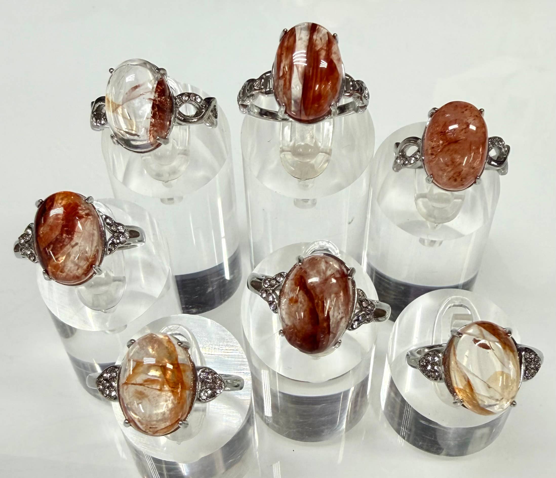 Naturlig månsten rostfritt stål. Storleken på månstenen är ungefär 8x10 mm vardera. Du kommer att få 1 storlek 6, 2 storlek 7, 2 storlek 8, 1 storlek 9 och 1 storlek 10. Minsta beställning är 7 st. Skick är nytt. Gratis lokal upphämtning i Brooklyn, New York. Stenar, kristaller, kristallsmycken, kristallgrossist, andlig, meditation, metafysisk grossist.
