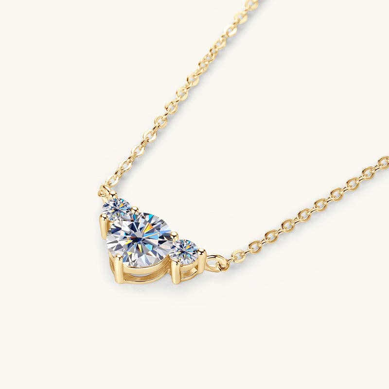 SKU: N1061-G Tillverkad i USA Material: Guldpläterad, Sten, och Sterlingsilver Stil: Klassiskt och Minimalistiskt Tema: Kärlek Tillfälle: Bröllop och förlovning och Vardag Typ av sten: Moissanite Produktmaterial: Plastfri Förpackning: Plastfri och Återvinningsbar Produktion: Drivs av förnybara energikällor, Etiskt framställd, Fair Trade, och Transport med låg miljöpåverkan