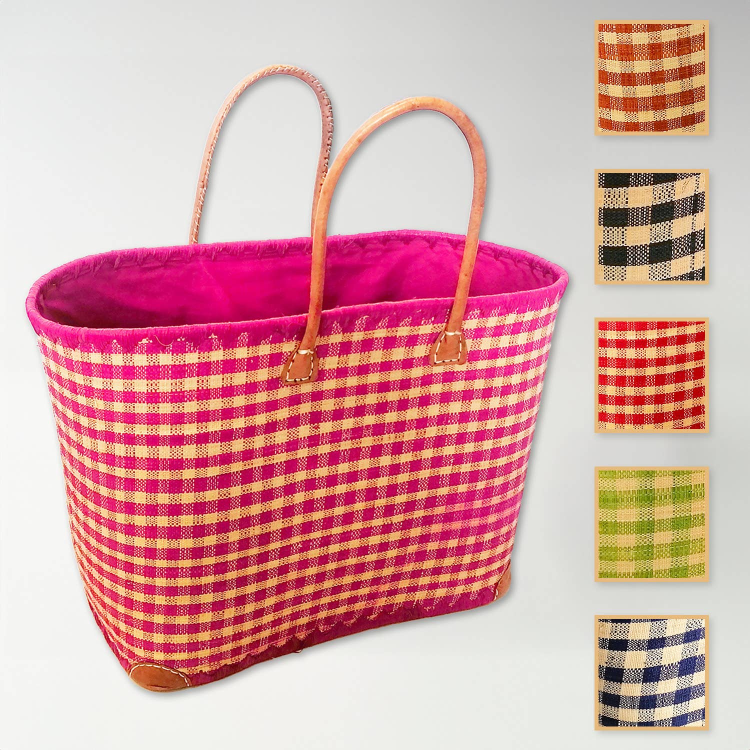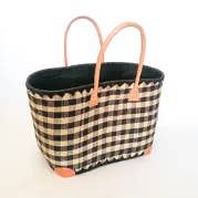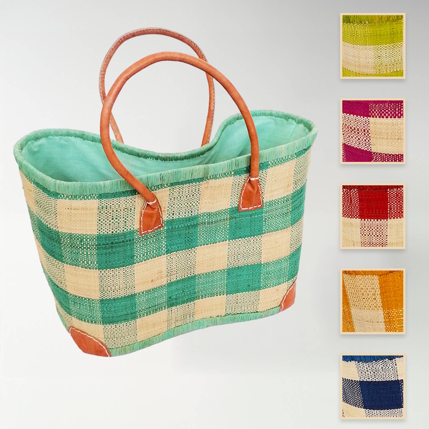 Denna ”BELOHA” rutiga rabankorg är designad av madagaskiska hantverkare. Denna korg är idealisk för att gå till stranden, poolen, för staden eller för picknick. Solid och robust, den här korgen låter dig också handla på marknaden, eftersom korgens botten är förstärkt och kan stödja flera kilo. Den finns i flera färger och i två dimensioner. Eftersom denna korg är designad av hantverkare kan färgerna och dimensionerna variera något från en korg till en annan. + Produkten: denna korg är fodrad med en påse som gör att du kan stänga toppen av korgen med en sladd. Dimension: MM: Höjd 30cm x Längd 46cm x Bredd 20cm/GM: Höjd 33cm x Längd 50cm x Bredd 22cm; Material: naturfiber Utseende: vävd raban med rutmönster Ytbehandlingar: läderhandtag