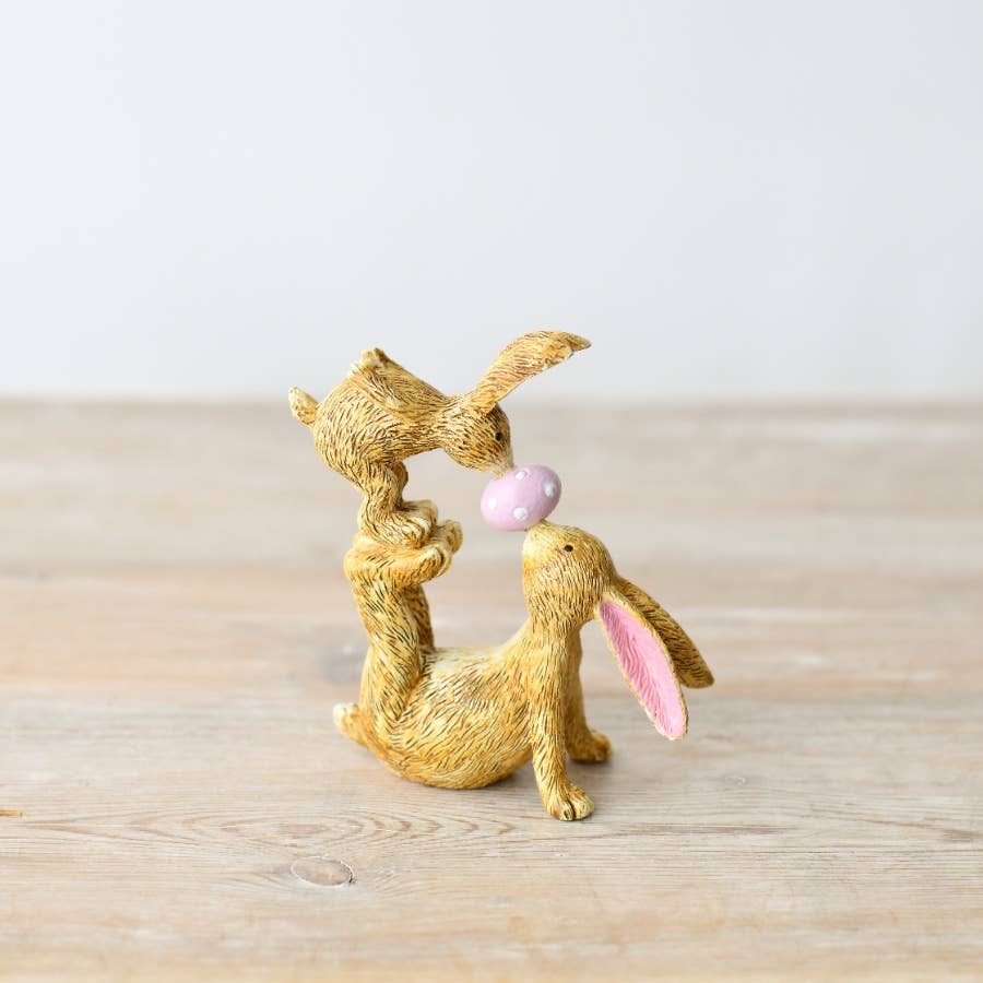 En ganska stående kanindekoration, komplett med ett rosa prickägg. Vackert detaljerad med texturerad ytfinish och höga spetsiga öron. Minsta orderkvantitet är 2 stycken, individuellt prissatta Storlek 14cm