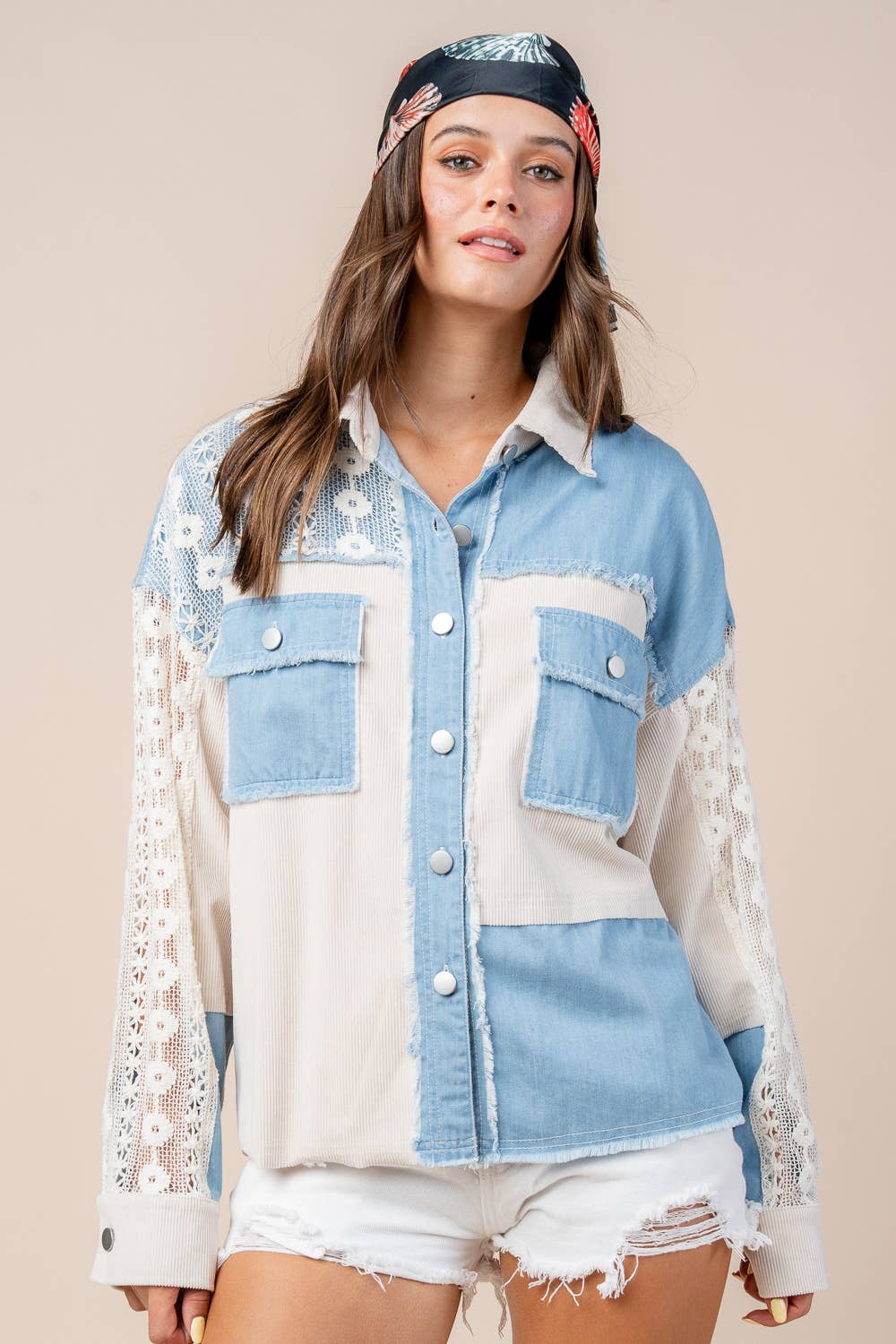 CHIC TVÄTTAD DENIM JACKA MED DRAGKEDJA OCH KORTA ÄRMAR SJÄLV: 100% BOMULL FODER: 100% POLYESTER | IMPORTERAD MODELLEN ÄR 5'8" OCH BÄR EN SMALL