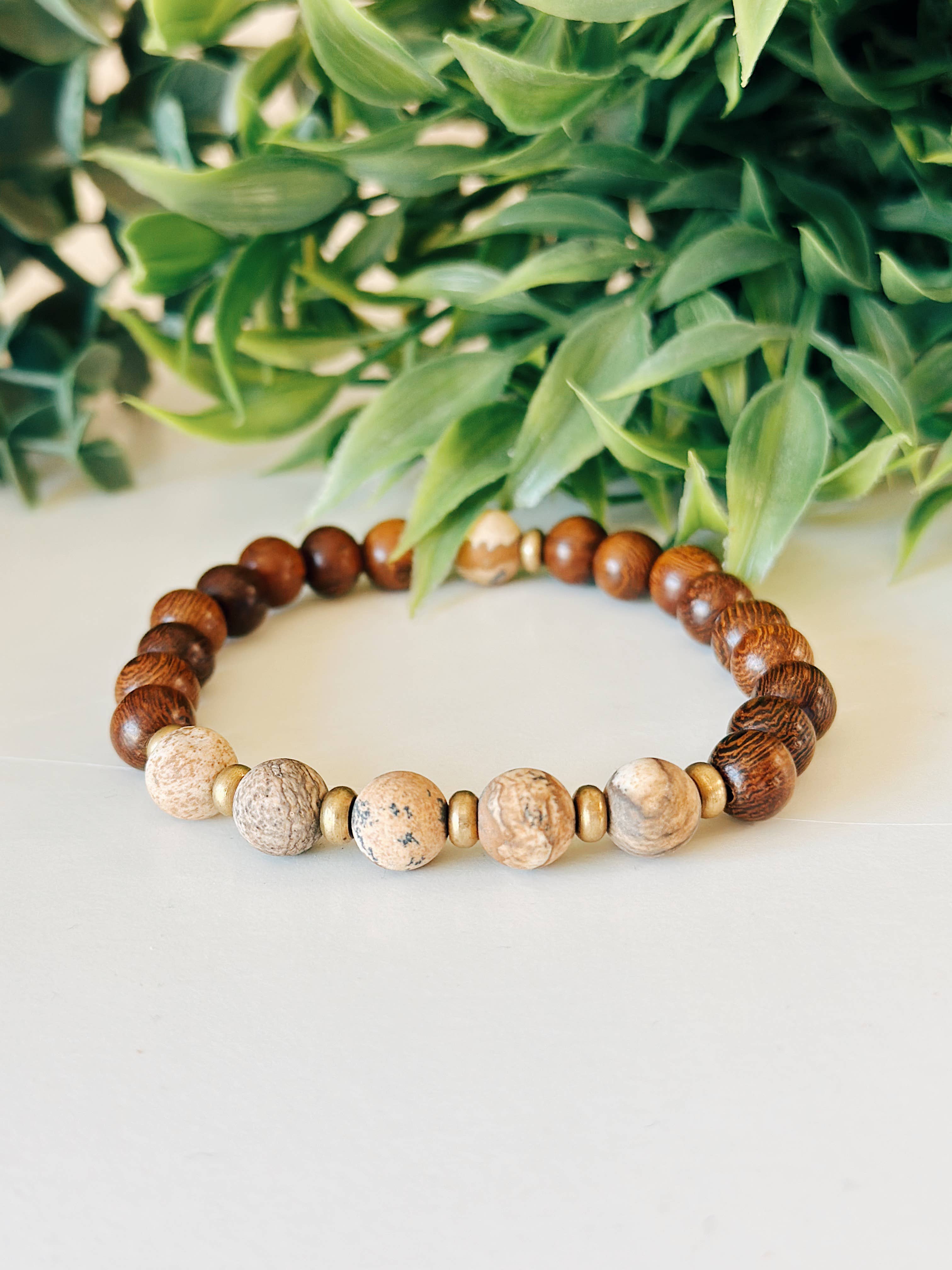 Rosa Zebra Jasper + Rose Gold + Lava Rock bead armband
