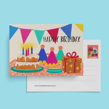 Hund och tårta - Grattis 145mm x 145 mm gratulationskort och kuvert, tryckt på 350gsm Cocoon 100% återvunnet kort.