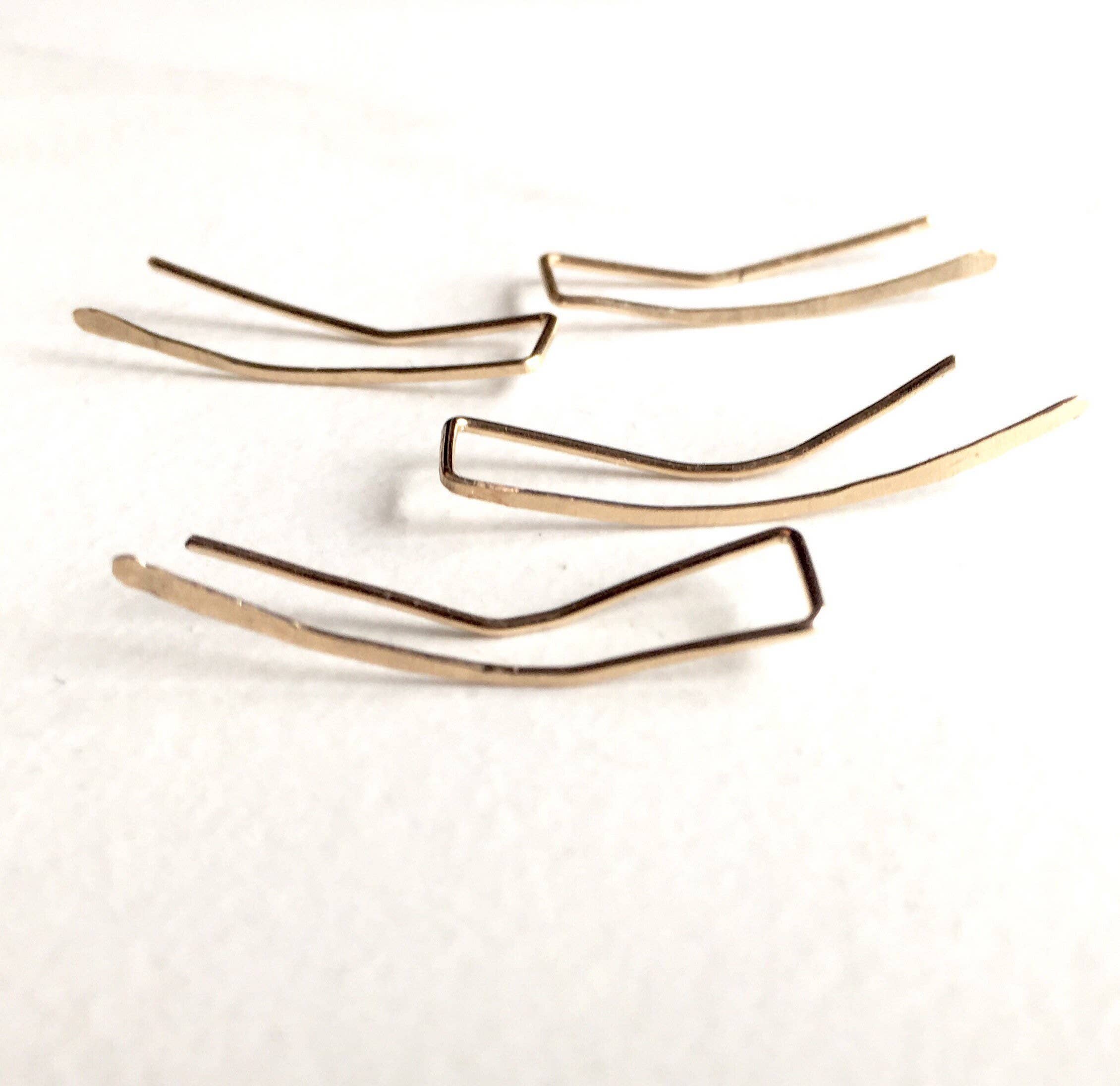 Moderna minimalistiska trädarörhängen med en Twist! Dessa är de perfekta örhängena varje dag. Finns i 14 k guld fylld, sterling silver eller ros guld fylld. Perfekt för känsliga öronlober. Det finns små unika variationer i varje handgjord bit. Den råa mässingen kommer att patina över tiden, lägga djup och skönhet till metallen. För att lysa upp det, sätt en q-tip i citron och gnugga metallens yta. För en ljus polermedel, använd en produkt som Brasso. Vad är guldfyllning/ed? Två till tre lager av 14k eller roséguld bundna till ytan av fina juveler' mässing för totalt 5% av vikten av metallen. Dessa lager slits inte bort och är lämpliga för att bära i duschen, lämnar in under långa perioder och kommer inte att utsätta känsliga öron för mässingen inuti.