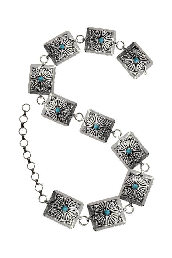 VÄSTERLÄNDSK METALL NAVAJO CONCHO KEDJEBÄLTE