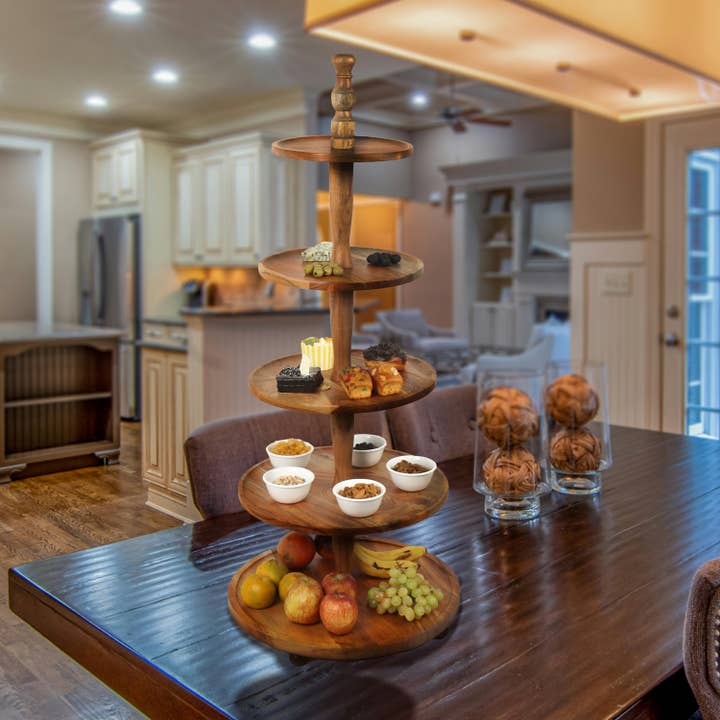 Upptäck våra tårtfat i trä och metall, ett set med 3 eleganta och mångsidiga fat som lyfter fram dina desserter på ett imponerande sätt. Tillverkade med en perfekt kombination av trä och aluminium, är dessa fat inte bara stadiga utan har också en rustik charm som passar i alla hem. Oavsett om du håller fest eller bara unnar dig något sött, är dessa tårtfat ett utmärkt tillskott till din serveringsuppsättning. Med olika höjder kan du skapa en vacker våningseffekt eller använda dem separat för att visa upp dina läckra skapelser. Kombinationen av trä och metall ger en sofistikerad känsla som gör dessa fat till en stilfull mittpunkt vid varje tillfälle. Välj våra tårtfat i trä och metall för att låta dina desserter glänsa med stil.