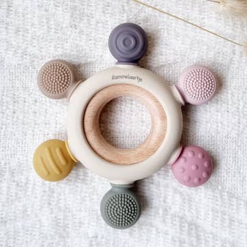 Lindra ditt barns tandproblem med vår signaturkombinerade Jedbaby kaninbitare och pärlsnappklämma. Tillverkad av mjuk silikon och slätt trä, denna kombination av teether och nappklämma ger skonsam massage till tandköttet och är perfekt för små händer att greppa. Nappklämman passar också de flesta andra nappar och tänder! Säkerhet * Vår teeter och nappklämma är gjord av 100% silikon och bokträ av livsmedelskvalitet. * Både teetern och nappklämman är giftfria material och är fria från BPA, PVC och ftalater. Skötselråd * Tvätta före första användning. Torka av dagligen och handtvätt efter varje efterföljande användning. Handtvätt med mild tvål och varmt vatten. Skölj och torka noggrant. Sterilisera eller sänk inte ner i vatten. Detaljer * Rekommenderad ålder: 3+ månader * Vikt (teether + clip): 2,6 uns * Mått: Teether: 2.95 (L) x 0.71 (B) x 4.29 (H) tum, Nappklämma: 8.5 (L) tum