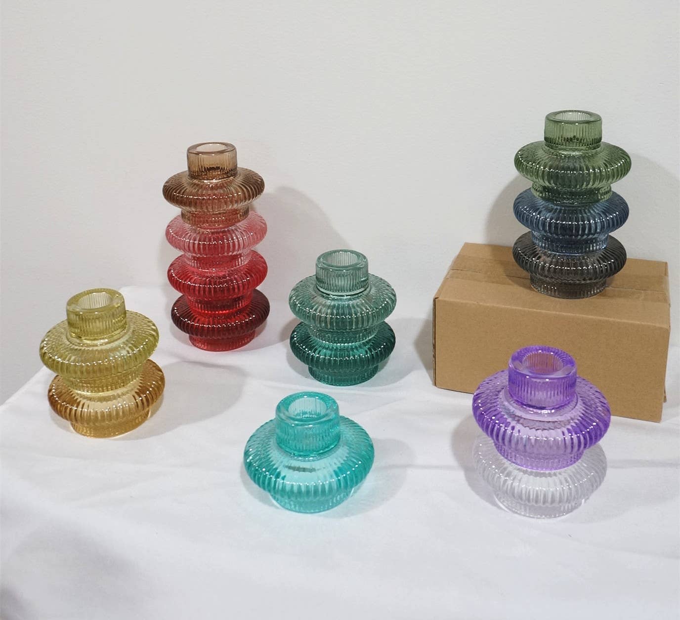 * Flera stilar finns, mixade stilar är mest populära. * Storleksdetaljer finns på bilderna. * Passar för hem, fester, bröllop och evenemangsdekorationer. * Leverans från New York, snabb frakt. Med en trendig, räfflad yta erbjuder den tjocka glasljushållaren Tanger enkel elegans som kompletterar en modern borddukning och skapar ett mysigt, splittrat sken när ljuset från det fladdrande ljuset reflekteras genom ytan.