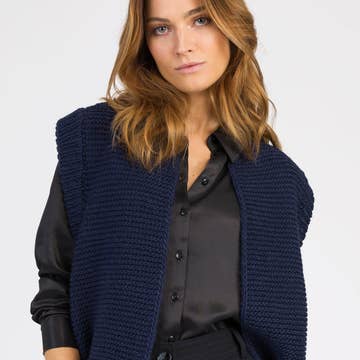 V-ringad, hålstickad kofta i lös passform