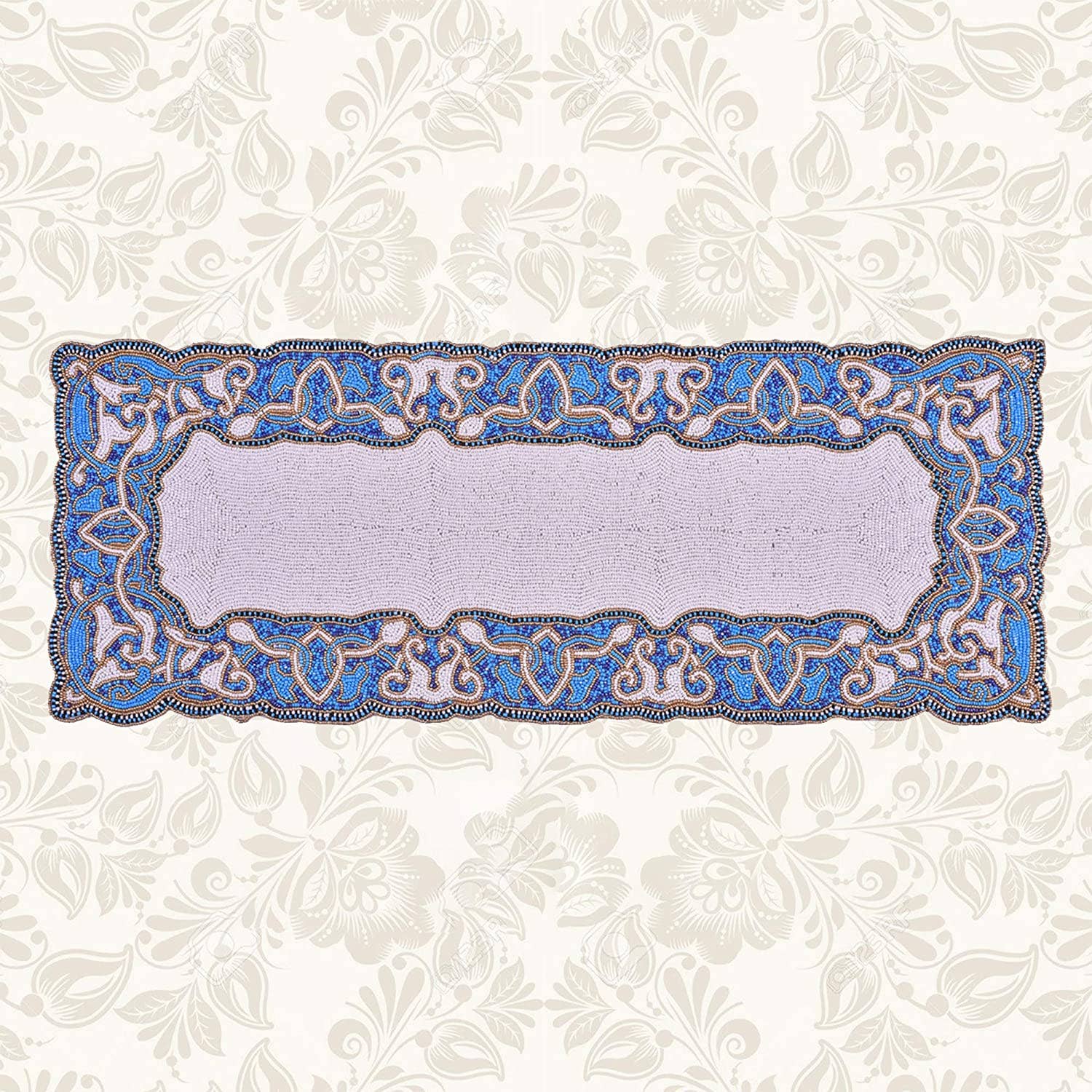 , 1 Broderade Pärlstav Runner bordstabletter, Satin tillbaka. Inredning för ditt soffbord, Matbord, Vackra moderna mattor, blått och vitt glas pärlstav Design. Elegant present till jul, årsdag, inflyttningsgåva. Storlek 36 x 13 tum. Lätt att använda och rengöra. * Royal Appeal: Visar ett vintagemönster som skapas med vita och blå glaspärlor, dessa bordstabletter stoltserar en kunglig look. * Långvarig: Dessa matbordsmattor har satinunderlag, vilket ger dem motståndskraft och hållbarhet. * Ser bra ut: Dessa utsökta bordsmattor ser fantastiska ut på både inomhus och utomhus matbord och soffbord. * Underbar gåva: De som är på jakt efter en underbar inflyttningsgåva för dina nära och kära, slutar deras sökning med denna härliga uppsättning av 1 broderade pärlstav Runner placemats.
