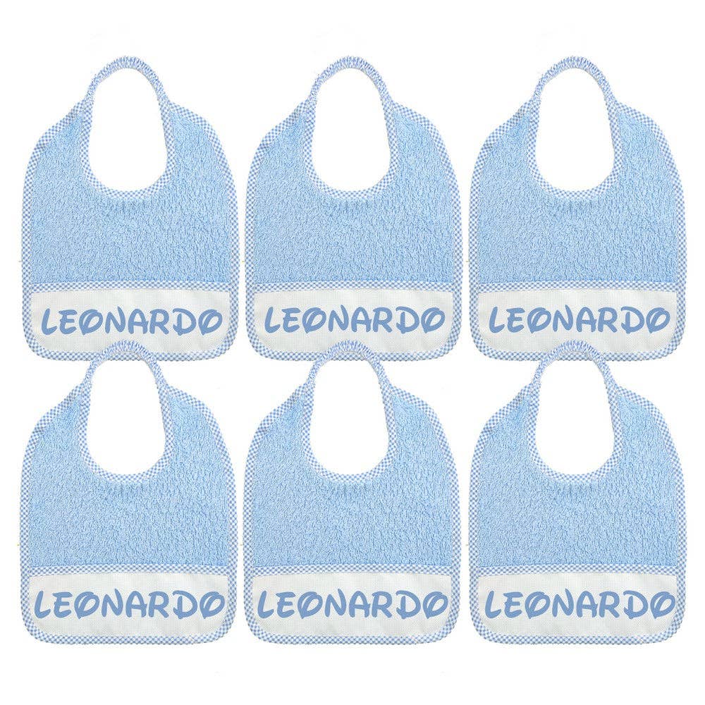 Frottéhaklappar med elastik för broderi, mått 26x34 cm, med en aida-band för att brodera barnets namn. Förskolehaklappar i frottétyg med korsstygnsbroderi på aida-band. Dessa haklappar är särskilt lämpliga för barn som redan äter själva, då de är tillräckligt stora för att täcka kläder väl och förhindra att de blir smutsiga under måltiderna. Perfekta för förskola och hemmabruk. Elastiken underlättar barnets självständighet genom att möjliggöra att de själva kan ta på och av haklappen. Mått: 25x32 cm Tillgängliga färger: Alltid vit bas med rutig kant i rosa, blå, röd, blå, orange eller aqua-grön. Material: 100 % bomull Tillverkad i Italien Embroidery-linjen Bubabù och Magie di Casa innehåller många produkter att personliga för barn och hemmet. Bubabù barnprodukter är helt tillverkade och paketerade i Italien, distribuerade av Almatex S.r.l.