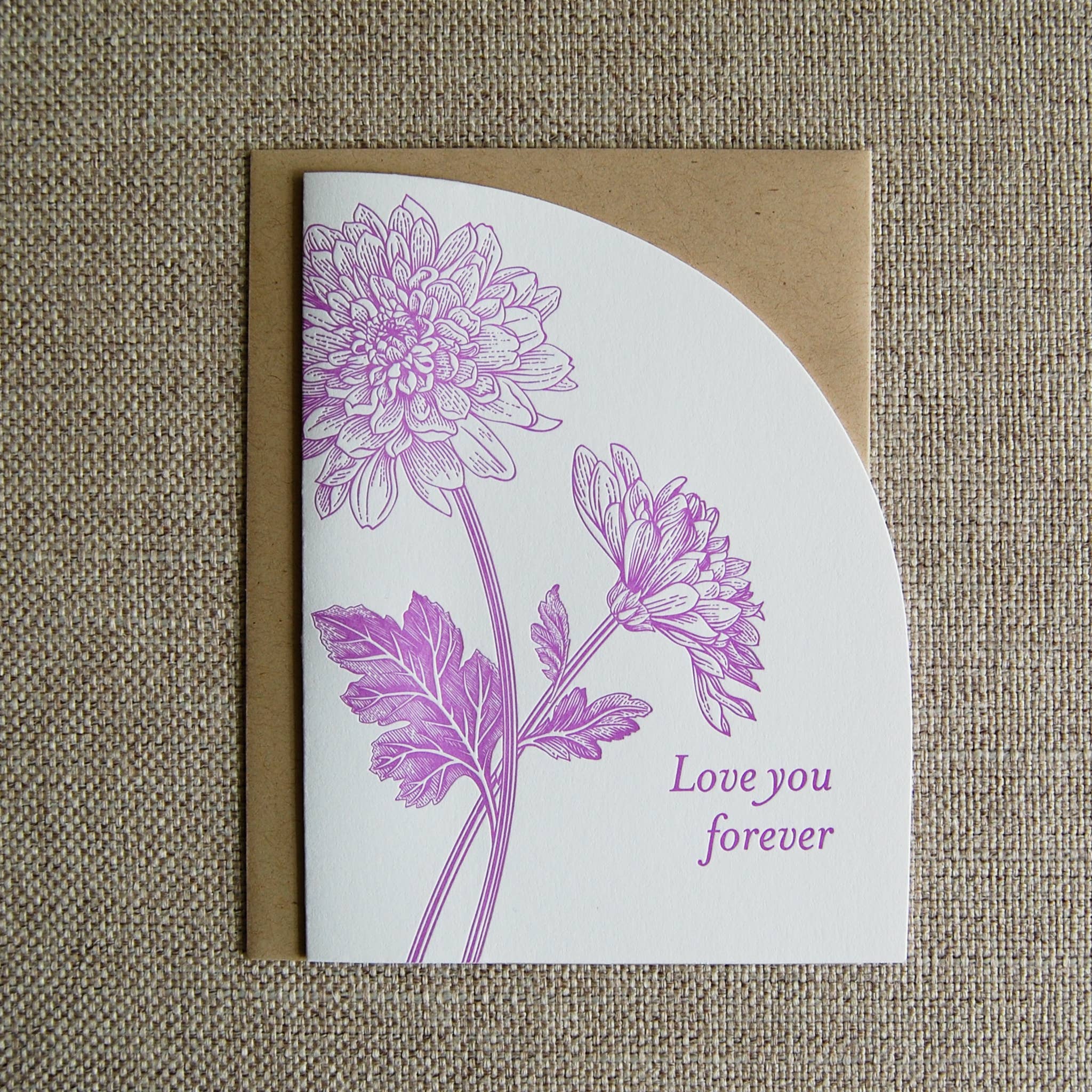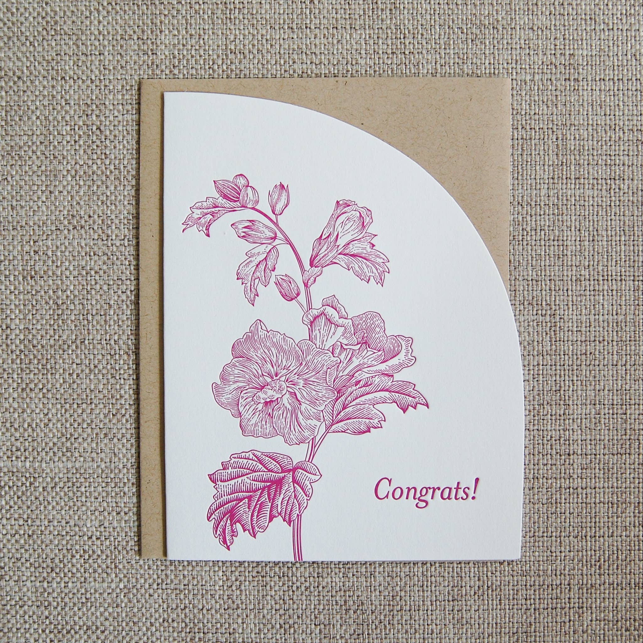 Storlek A2 (4,25 x 5,5") vikta kort. Stansad halvbågform. Boktryck tryckt på antingen Crane Lettra 110lb cottom papper eller Mohawk Superfine Eggshell 120lb papper med ett kraftkuvert. Cellohylsa.